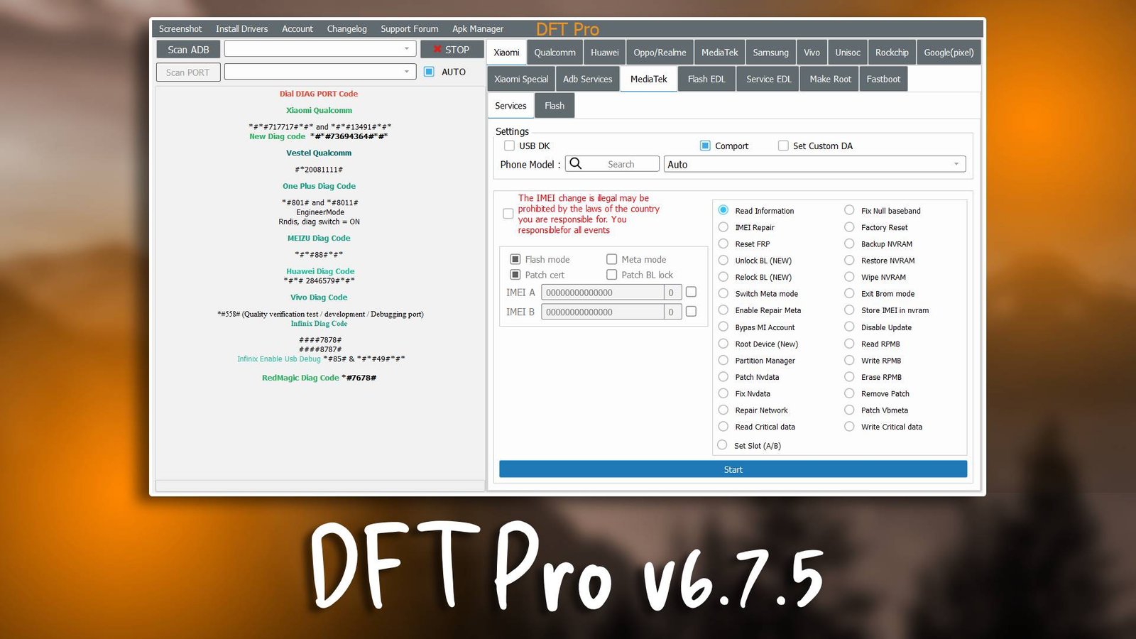 DFT Pro v6.7.5 supports core mobile repair functions, including:
